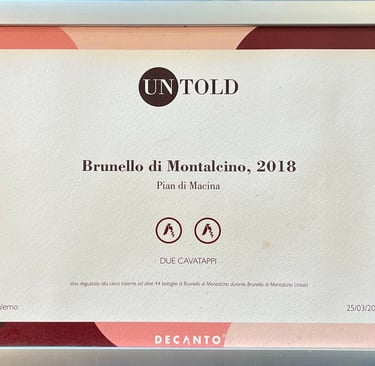 Il progetto ”vino” parte nel 2001 e si concretizza definitivamente con l’acquisto del Podere “Pian di Macina 199” avvenuto nel 2018,ad oggi produzione si aggira sulle 2.000/3.000 bottiglie all’anno esclusivamente di Brunello di Montalcino.